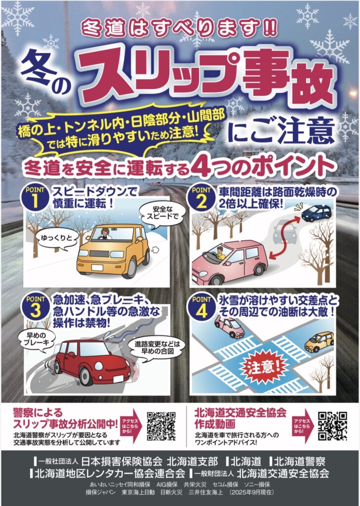 ※橋の上、トンネル出入口、日陰は特に凍結しやすく注意が必要です。